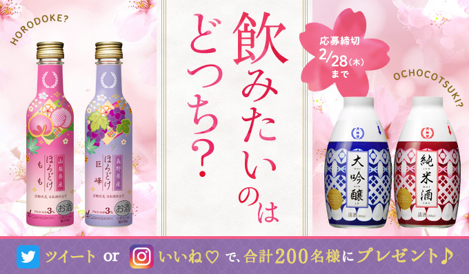 「飲みたいのはどっち?」お好きなお酒を抽選で200名様にプレゼントいたします。