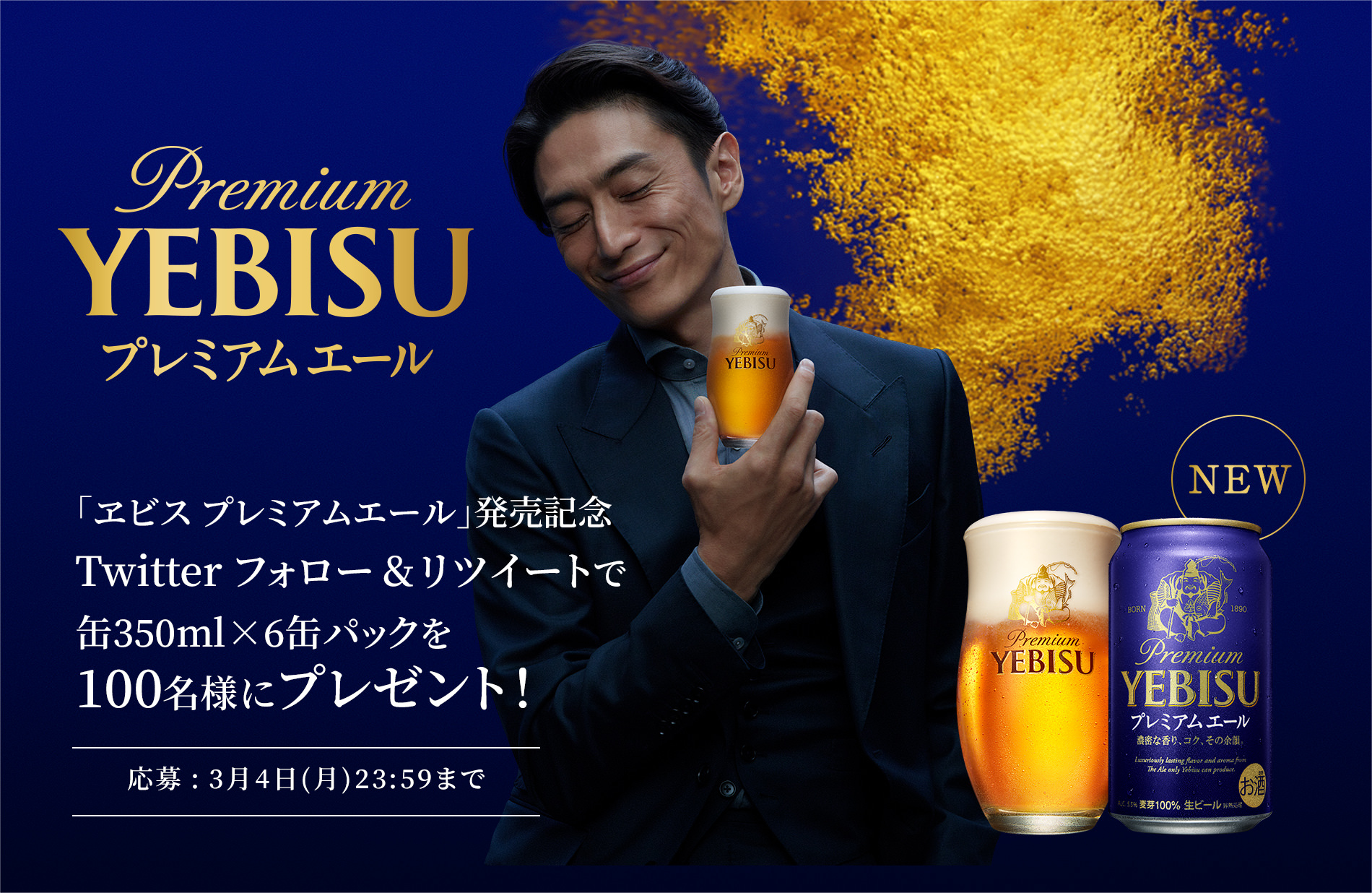 ヱビス プレミアムエール 缶350ml x 6缶パックを抽選で100名様にプレゼントいたします。