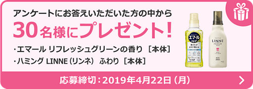 エマール リフレッシュグリーンの香り などを抽選で30名様にプレゼントいたします。