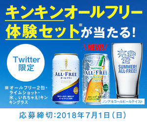 氷、いれちゃえ!キンキングラス+オールフリー3本セットを抽選で1,000名様にプレゼントいたします。