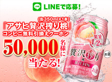 『アサヒ贅沢搾り桃』(缶350ml×1本)を抽選で50,000名様にプレゼント