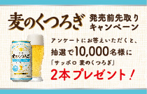 サッポロ 麦のくつろぎ(350ml×2本)を抽選で10,000名様にプレゼントいたします。