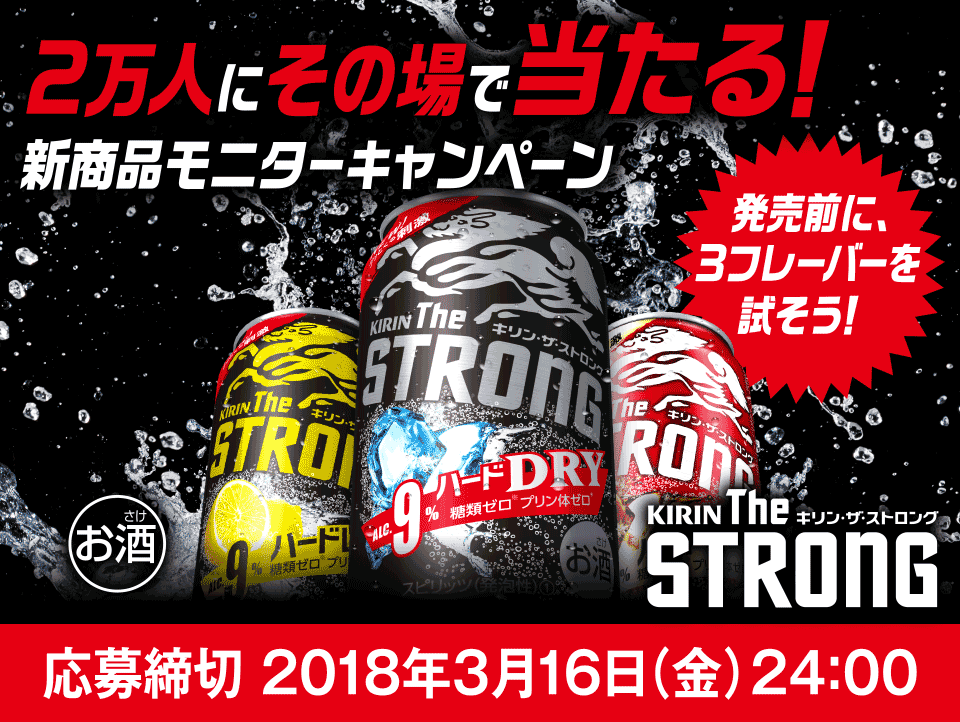 KIRIN The STRONG 3缶飲み比べセットを抽選で20,000名様にプレゼントいたします。
