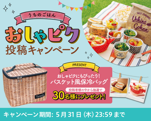 投稿してくださった方の中から抽選で、30名様に「おしゃピクにもぴったり!バスケット風保冷バッグ」が当たります。