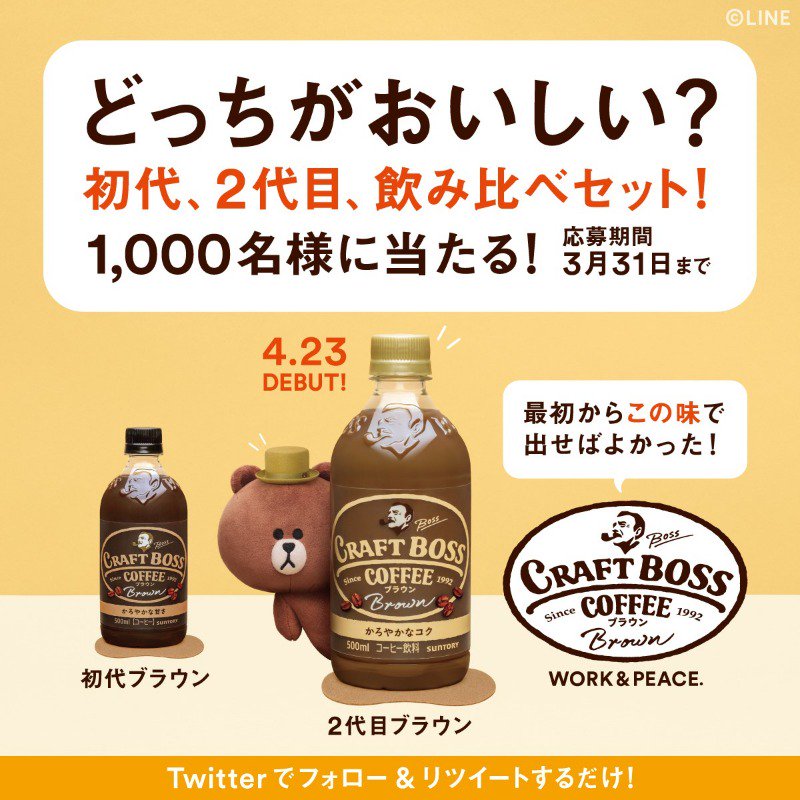 クラフトボス ブラウン初代・2代目飲み比べセットを抽選で1,000名様にプレゼントいたします。