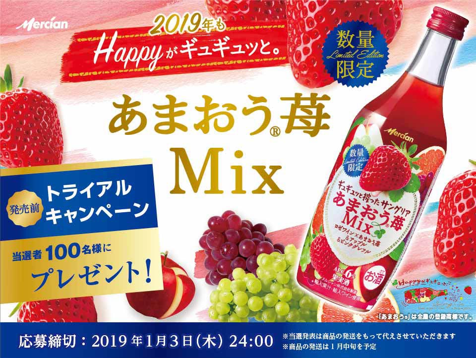 ギュギュッと搾ったサングリアあまおう®苺Mix を抽選で100名様にプレゼントいたします。