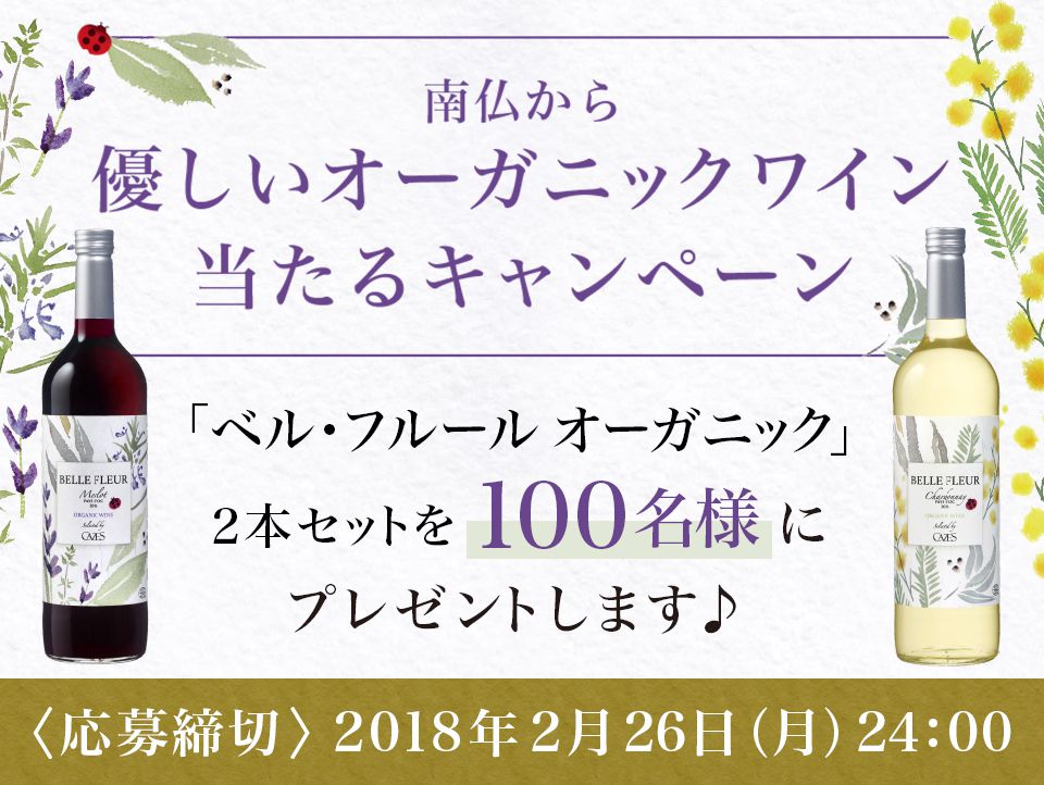 ベル・フルール オーガニック ワインを抽選で100名様にプレゼントいたします。