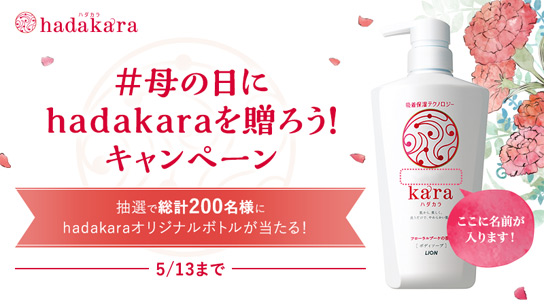お母さんに贈れる、「あなたの名前入りhadakaraオリジナルボトル」を抽選で200名様にプレゼントいたします。