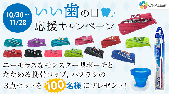 ユーモラスなモンスター型ポーチとたためる携帯コップ、ハブラシを抽選で100名様にプレゼントいたします。