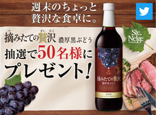 摘みたての贅沢 濃厚黒ぶどう(瓶720ml×1本)を抽選で50名様にプレゼントいたします。