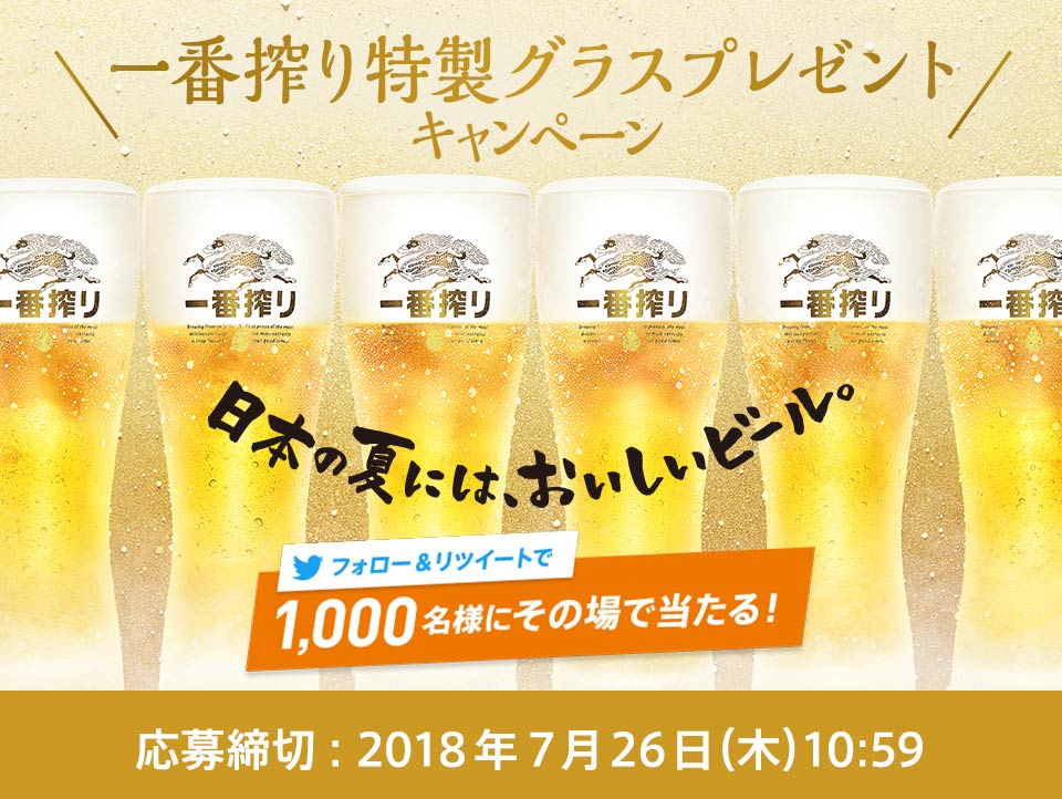 一番搾り生ビール6缶パック(350ml×6本)などを抽選で1,000名様にプレゼントいたします。