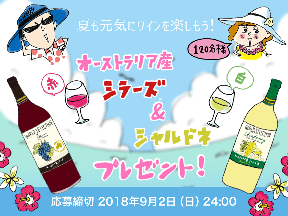 シラーズとシャルドネを抽選で120名様にプレゼントいたします。