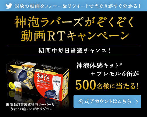 電動超音波式神泡サーバー+プレモル6本セットなどを抽選で500名様にプレゼントいたします。