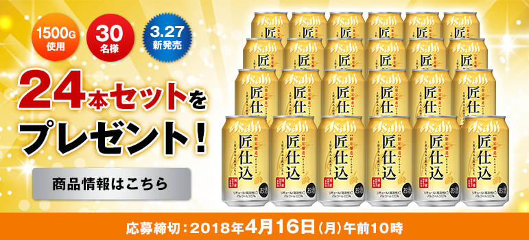 アサヒ 匠仕込(缶350ml×24本)を抽選で30名様にプレゼントいたします。