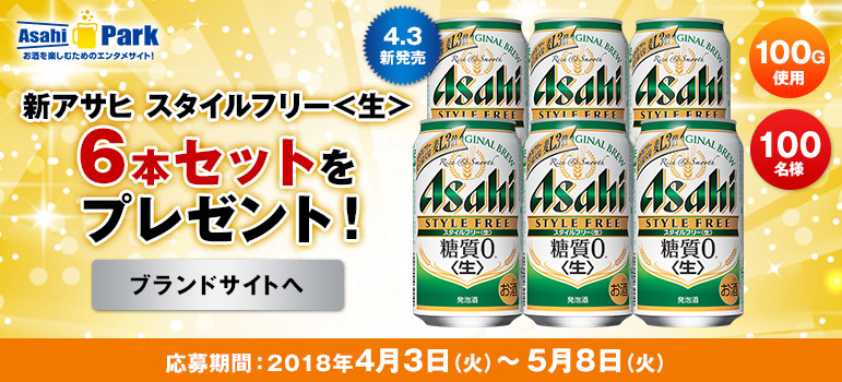 アサヒ スタイルフリー<生>を抽選で100名様にプレゼントいたします。