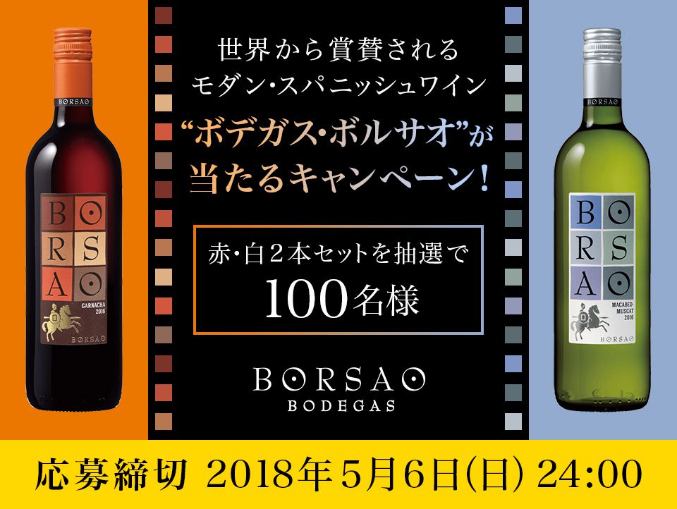 抽選で100名様に「ボルサオ クラシコティント 750ml」、「ボルサオ クラシコブランコ 750ml」の2本セットをプレゼント