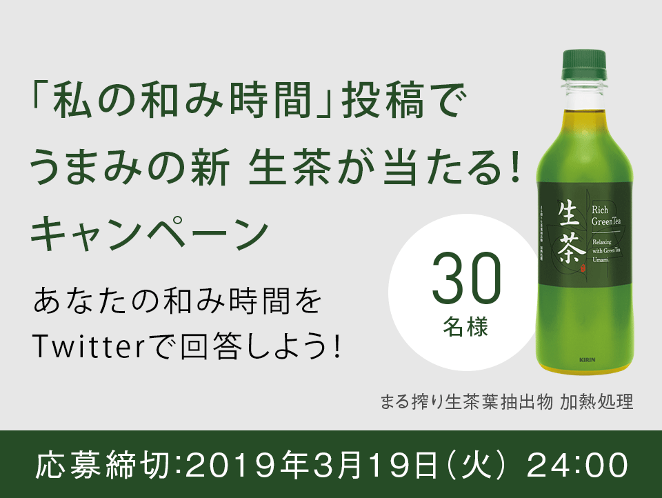 キリン 生茶 1ケース (525ml PET×24本)を抽選で30名様にプレゼントいたします。